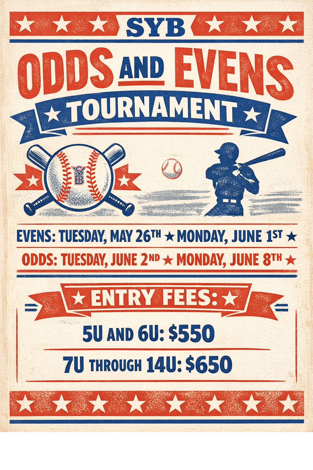 Note: 6U and 12U bracket play begins on Saturday.